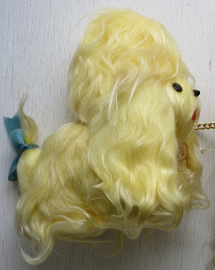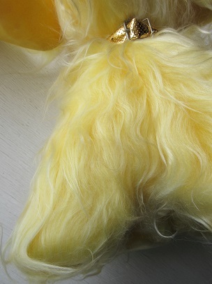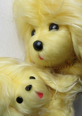 ウェービーな黄色い毛が美しい、親子のワンちゃんぬいぐるみです。首輪から首輪へ、ゴールドカラーの鎖でつながれています。小さい方は、鎖を外せば持ち歩いてぬい活アイテムとしても楽しめそう。可愛らしい昭和レトロのぬいぐるみです。🐩ブログ https://ameblo.jp/nakatoshi09/entry-12948308504.html